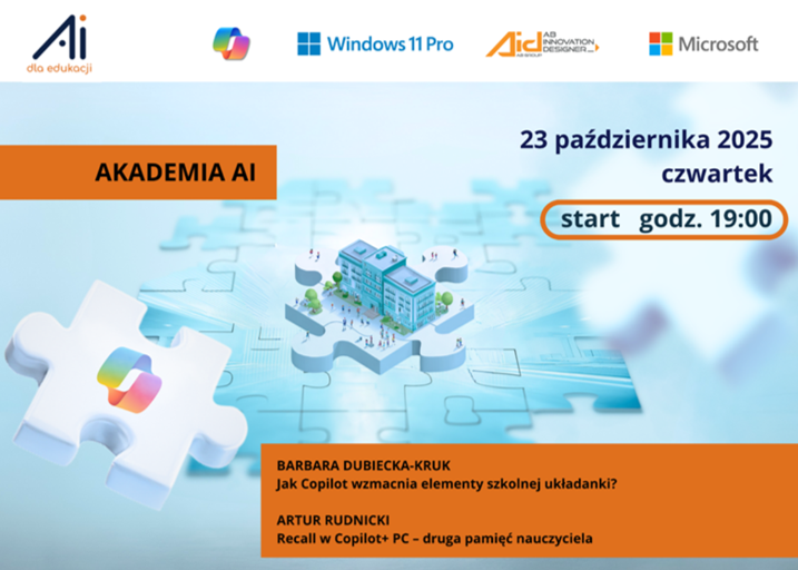 Od planu do projektu: Copilot i narzędzia Microsoft w edukacji STEM” & „Copilot + PC – pokaz mocy i edukacyjnego zastosowania Zapisz się